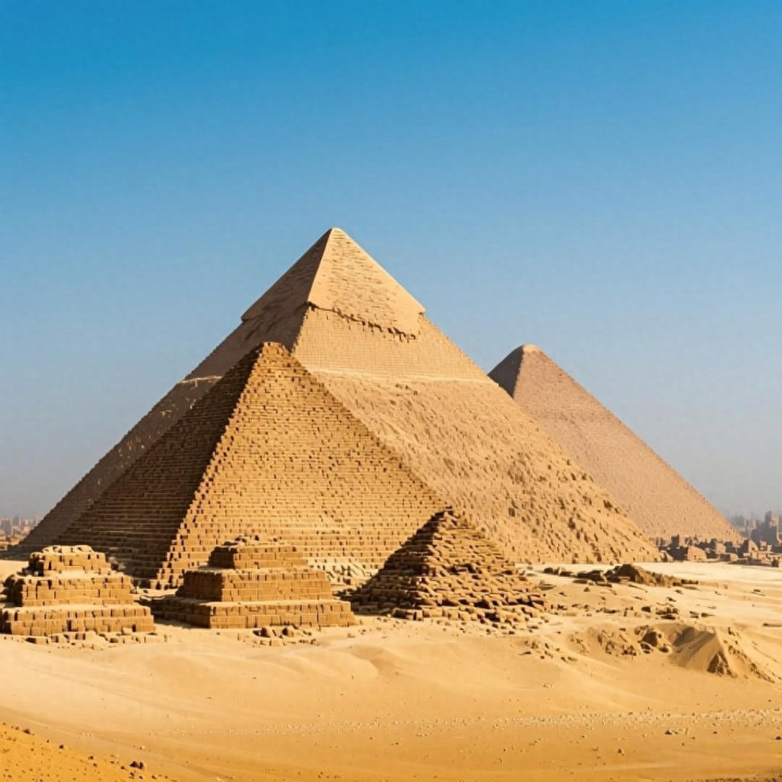 埃及金字塔,尤其是吉萨大金字塔,是世界七大奇迹之一,也是唯一保存至今的古代奇迹。它们静静地矗立在开罗郊外的吉萨平原上,仿佛一座座沉睡的巨人,守护着古埃及那段辉煌的历史。站在金字塔面前,仿佛能穿越时空的迷雾,触摸到那个充满神秘与壮丽的古老世界。